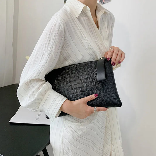 ÉpuiséSac à Main Noir Effet Croco Bandoulière Chaîne - Paulina