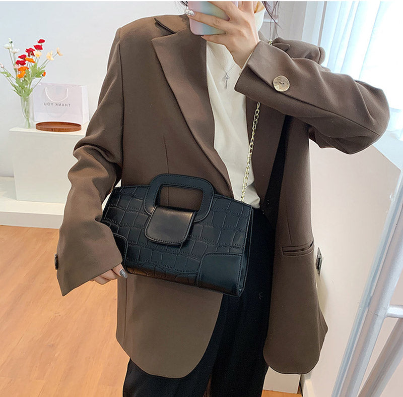 Sublimez votre style en optant pour le Sac a Bandouliere Noir avec Chaine, une pièce basique et intemporel qui suit les tendances estivales.